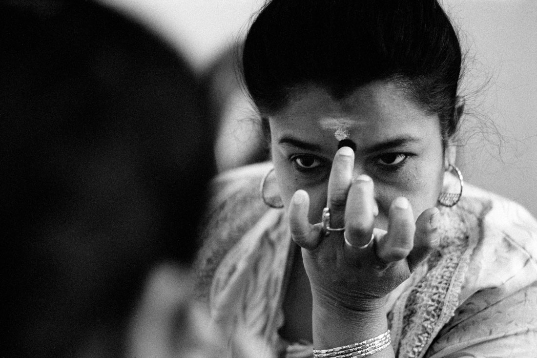 Tamilen in der Schweiz Eine tamilische Frau trägt ein Bindi auf die Stirn.
